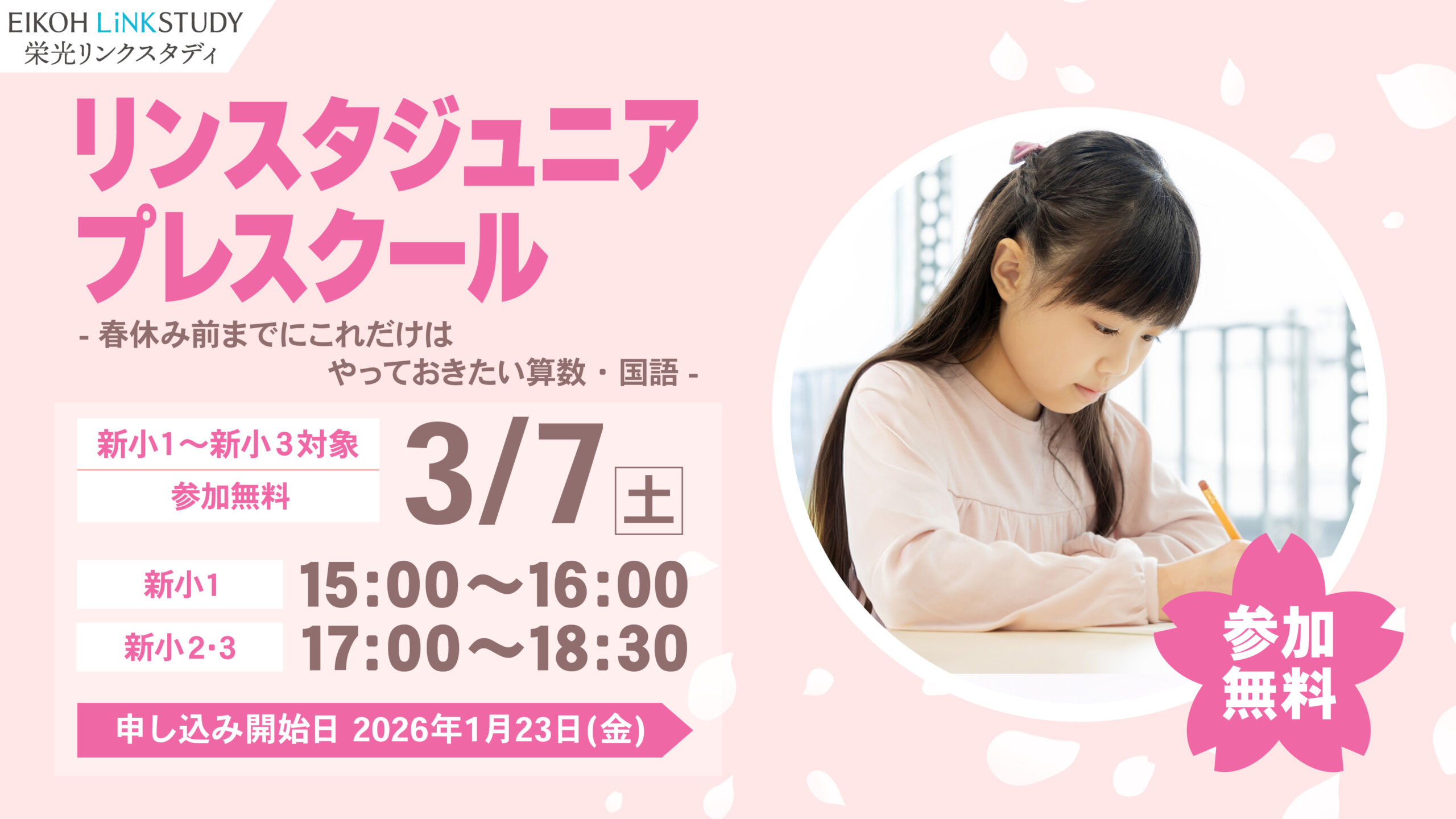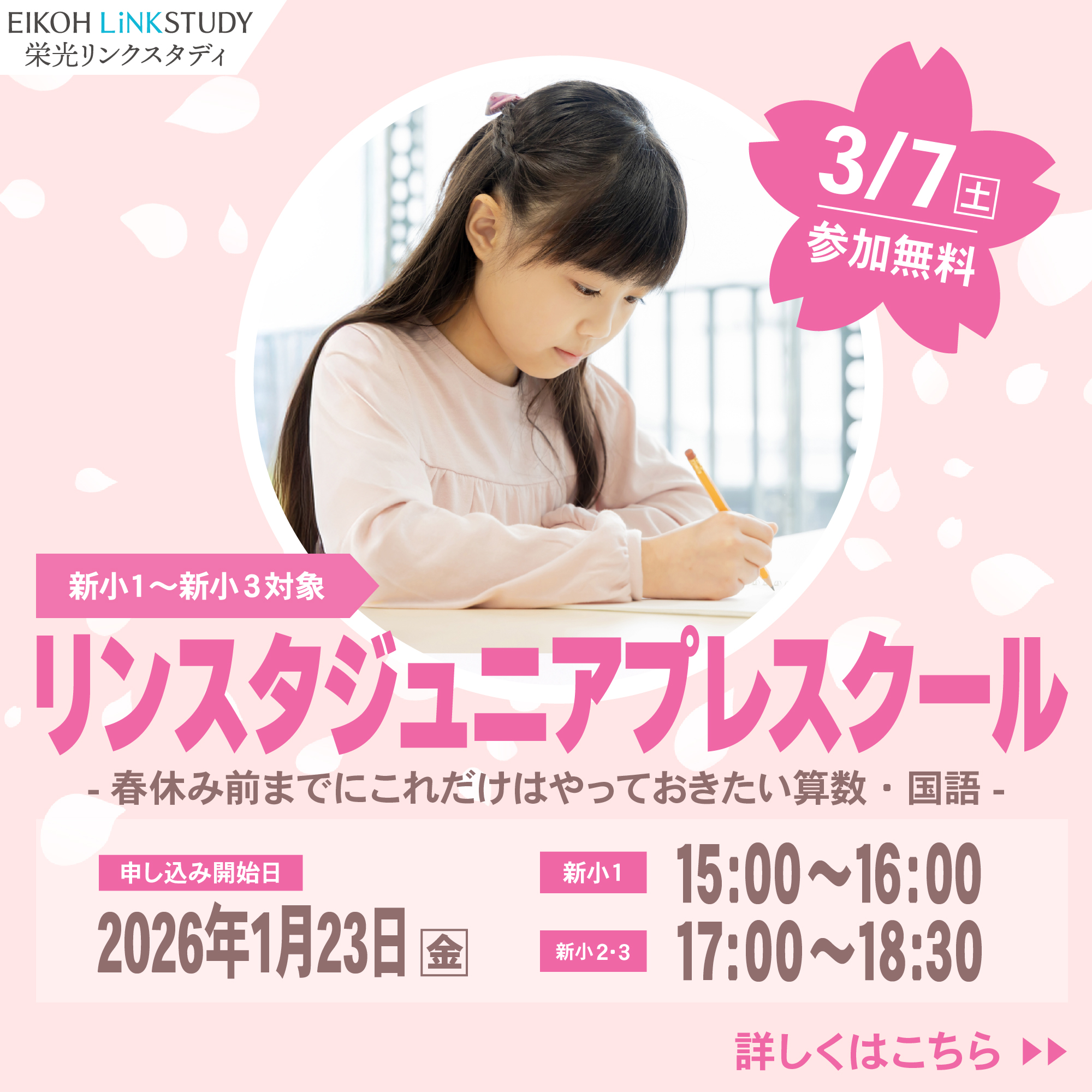 【新小1~小3対象】リンスタジュニアプレスクール~春休み前までにこれだけはやっておきたい算数・国語~