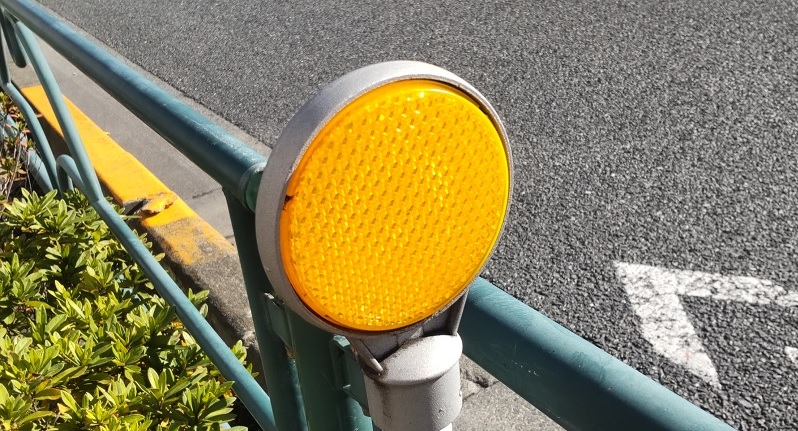 これは反射板(リフレクター)とよばれるものです。昼よりも夜に活躍しています。