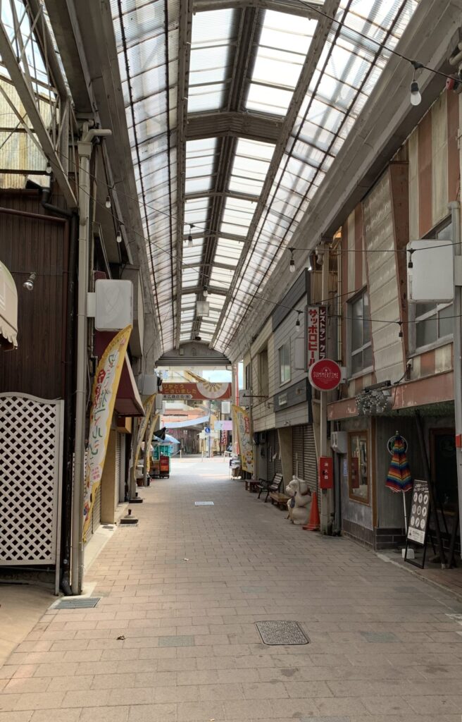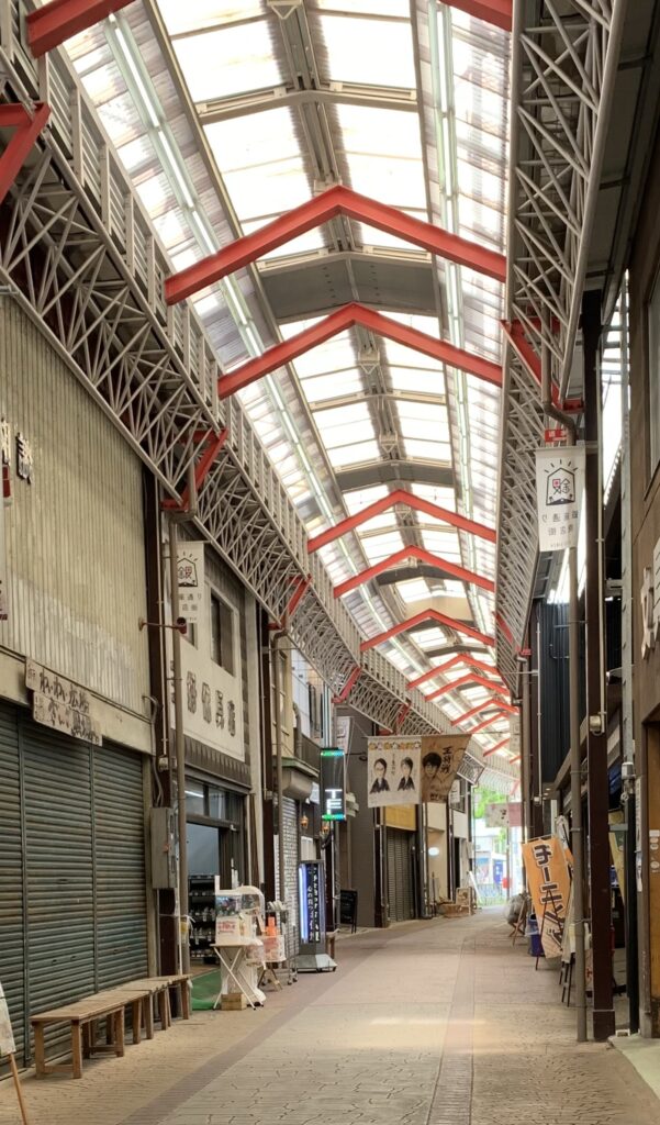 上の写真のような通りを歩いていくうちにあることに気づきました。「あれ? この風景見たことがあるぞ…」と。しばらくしてその答えがわかりました。写真ではわかりにくいと思いますが、奥の方に有名な将棋棋士である藤井聡太さんの幟が掲げられています。藤井棋士がタイトルをとったときに、喜ぶ人々が集まる様子がテレビで流されていました。それがこの商店街で、藤井棋士は瀬戸市の出身だったんですね。テレビで見た商店街は人であふれていましたが、今日の商店街は写真の通りほとんど人通りがありません。その風景のギャップも、すぐに気づかなかった理由だったのでしょう。