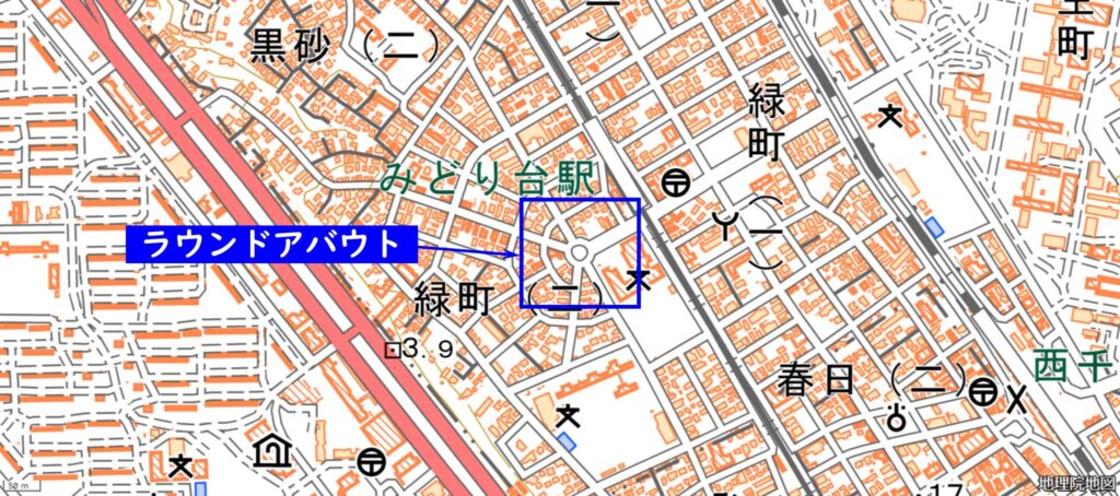 このような交差点のことをラウンドアバウト(環状交差点)といいます。中心に「中央島」と呼ばれる円形のスペースがあり、車はその周りを時計回りの一方向に通行します。信号機がないのが最大の特徴で、ヨーロッパでは広く普及しているそうです。日本でも2014年の道路交通法改正以降、各地で導入が進んでいます。交差点付近ではスピードを落とすため事故が少ないことや、災害時に停電となっても支障がないことなどの利点もありますが、中央島をつくるための広いスペースが必要なことや、交通量の多いところでは混雑が激しくなるなどの欠点もあるそうです。