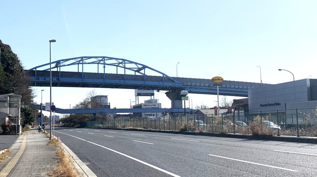 広い国道の先には、下の写真のような高い位置にある陸橋が見えます。