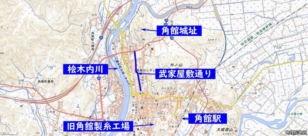盛岡駅から約1時間、角館駅に到着しました。この日は平日でしたが観光客もある程度いるようで、その人たちとともに階段を登って改札に向かいます。駅を出るとバス乗り場があり、一緒に降りてきた観光客のほとんどはそちらに向かいます。もちろん私にはバスに乗るという選択肢はありません。武家屋敷の入り口までおよそ1㎞ですから、歩けば15分くらいで着くでしょう。