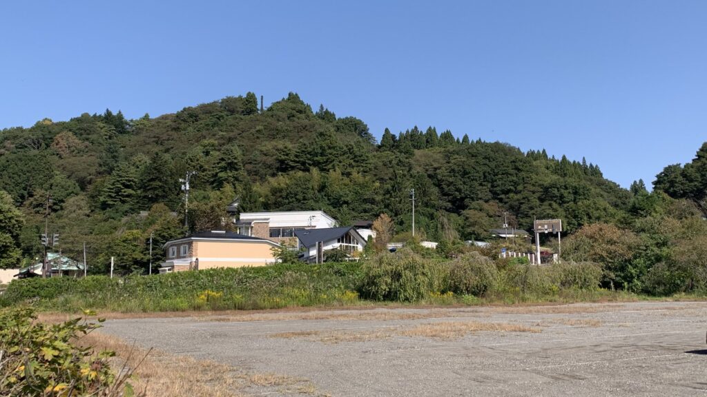 地図を見ると、武家屋敷通りの先に「角館城址」と書かれているのが見つかりました。下の写真が城址の山で、上に登っていく道もあるようです。…が、ここは秋田県。訪問した10月ごろは、連日のように熊出没のニュースが流れていました。熊との出会いは望むところではありませんので、ここは城のあった山の姿を遠目にするだけで、武家屋敷通りを引き返していくことにしました。