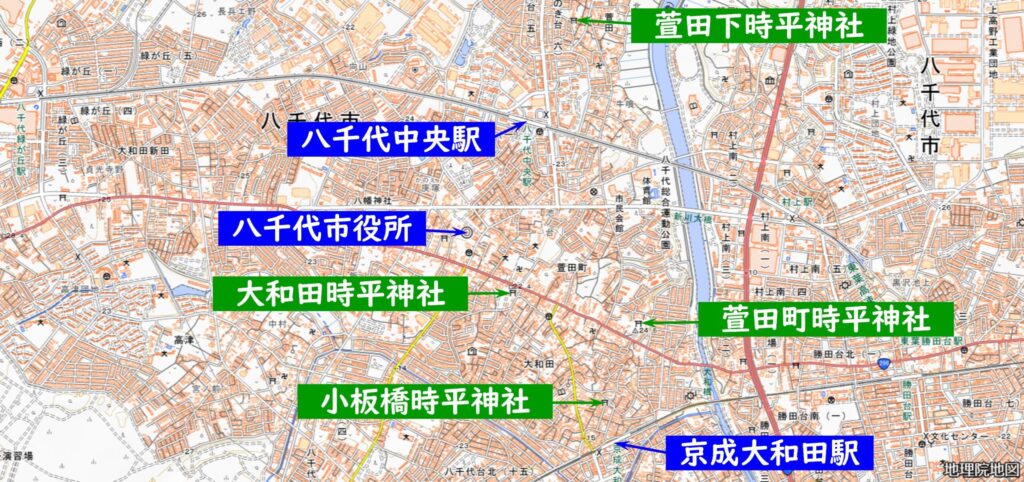 それでは、4つの時平神社を実際に訪ねてみることにしましょう。スタートは京成大和田駅です。