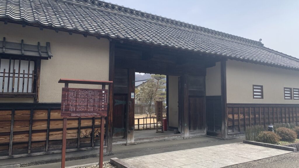 小学校の壁は新しくつくられたものでしょうけど、昔の屋敷や建物がそのまま保存されているというものあります。下の写真は、松代藩に仕えていた武士の屋敷の門なのですが、立派な姿をしてますよね。この家の主は、佐久間象山とも親交があったそうです。
