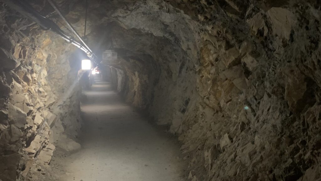 壕の中は、上の写真のようなゴツゴツとした壁が続いています。掘り進めた距離は約10キロメートル。わずか9ヶ月という短期間で完成させるため、ダイナマイトによる爆破と手掘りという壮絶な突貫工事が、24時間休みなしでおこなわれたそうです。そのような工事ですから、少なからず犠牲者も出たことでしょう。こんな「愚行」のために命を落とした方々が気の毒でなりません。